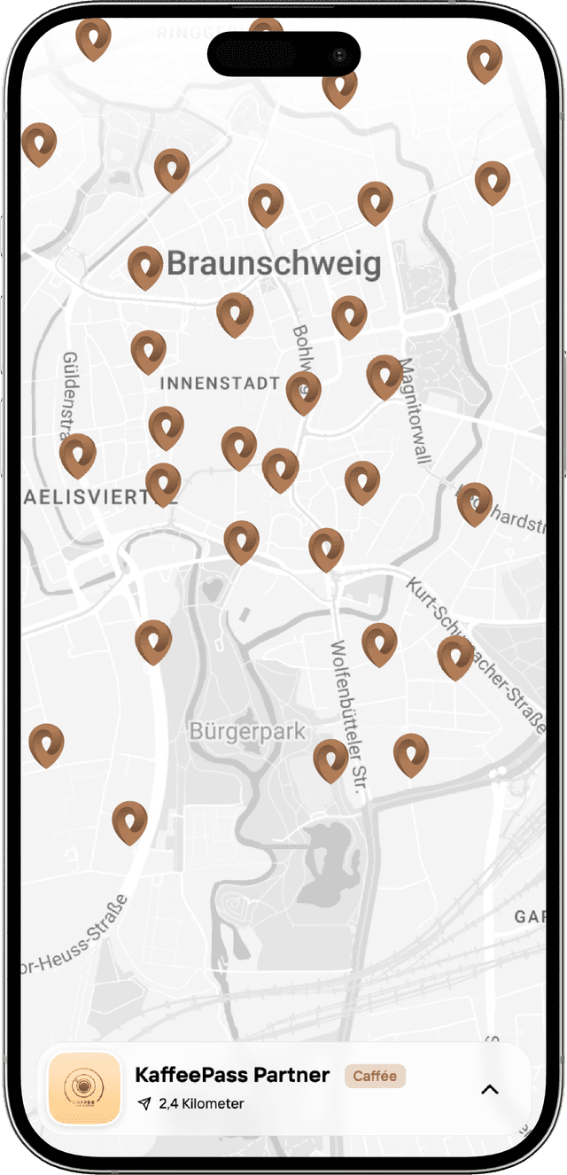 Unsere Partnerlandschaft in Braunschweig wächst stetig. Schon jetzt sind 30 Spots dabei – weitere folgen. Die Karte zeigt dir immer, wo du deinen Kaffee heute genießen kannstEin kleiner Vorgeschmack